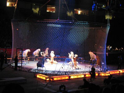 不銹鋼繩網(wǎng)用于馬戲團表演防護安全用網(wǎng),可有效防止老虎、獅子、狗熊等猛獸在表演時發(fā)生意外保護觀眾的人身安全,避免受到動物的傷害。