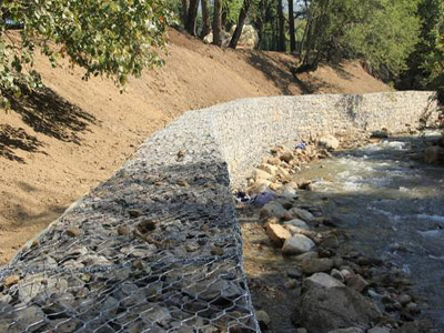 鉛絲石籠就是用重型六角網(wǎng)組裝成箱籠狀,在工程現(xiàn)場(chǎng)向箱籠內(nèi)填充一定規(guī)格的,滿足一定要求的石料,鉛絲石籠具有透水性、柔性、高抗腐蝕、高彈性、難分解性、長久防腐蝕性能力的雙絞合六邊形防護(hù)網(wǎng)。